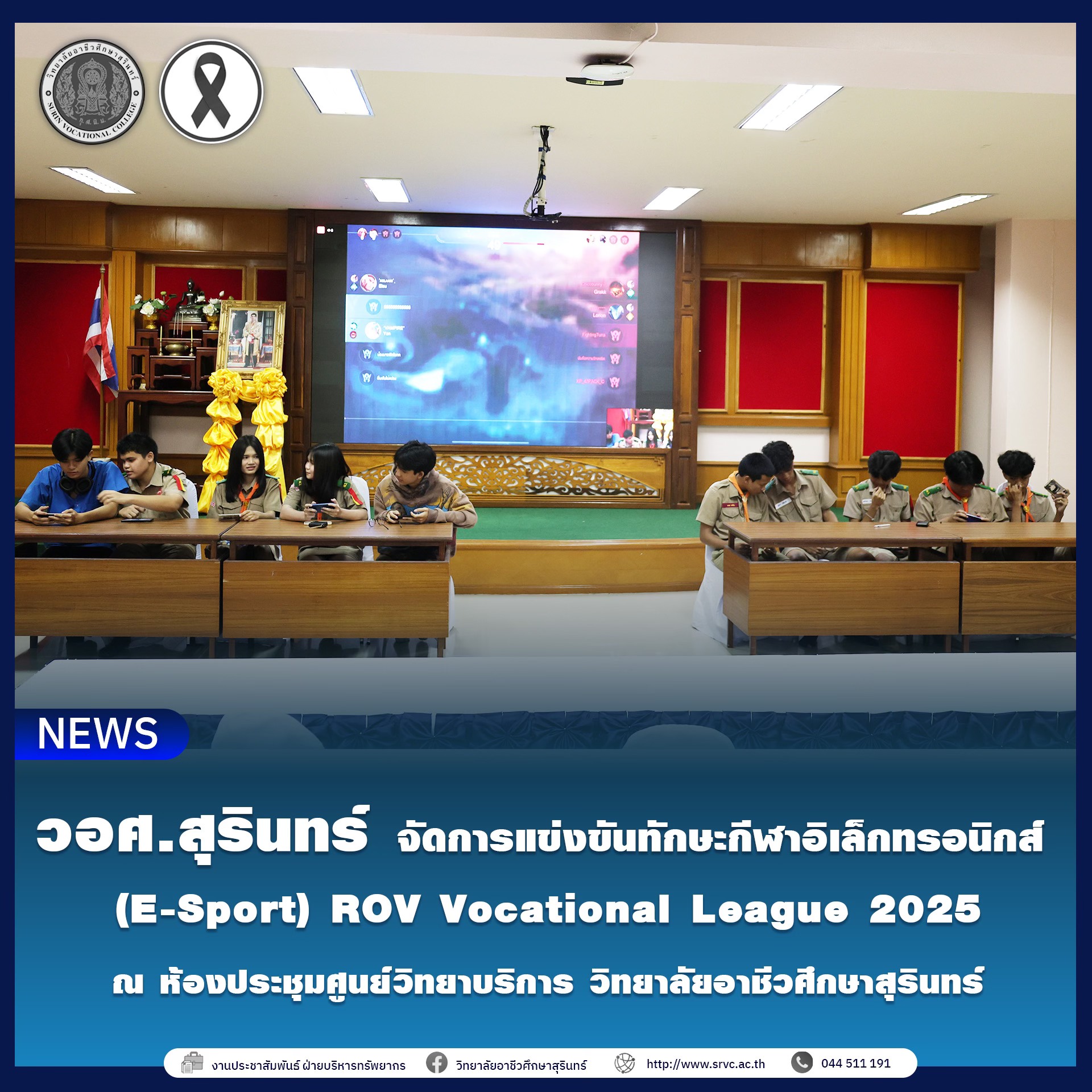 วอศ. สุรินทร์ จัดการแข่งขันทักษะกีฬาอิเล็กทรอนิกส์ (E-Sprot) ROV Vocational League 2025 ณ ห้องประชุมศูนย์วิทยาบริการ วิทยาลัยอาชีวศึกษาสุรินทร์