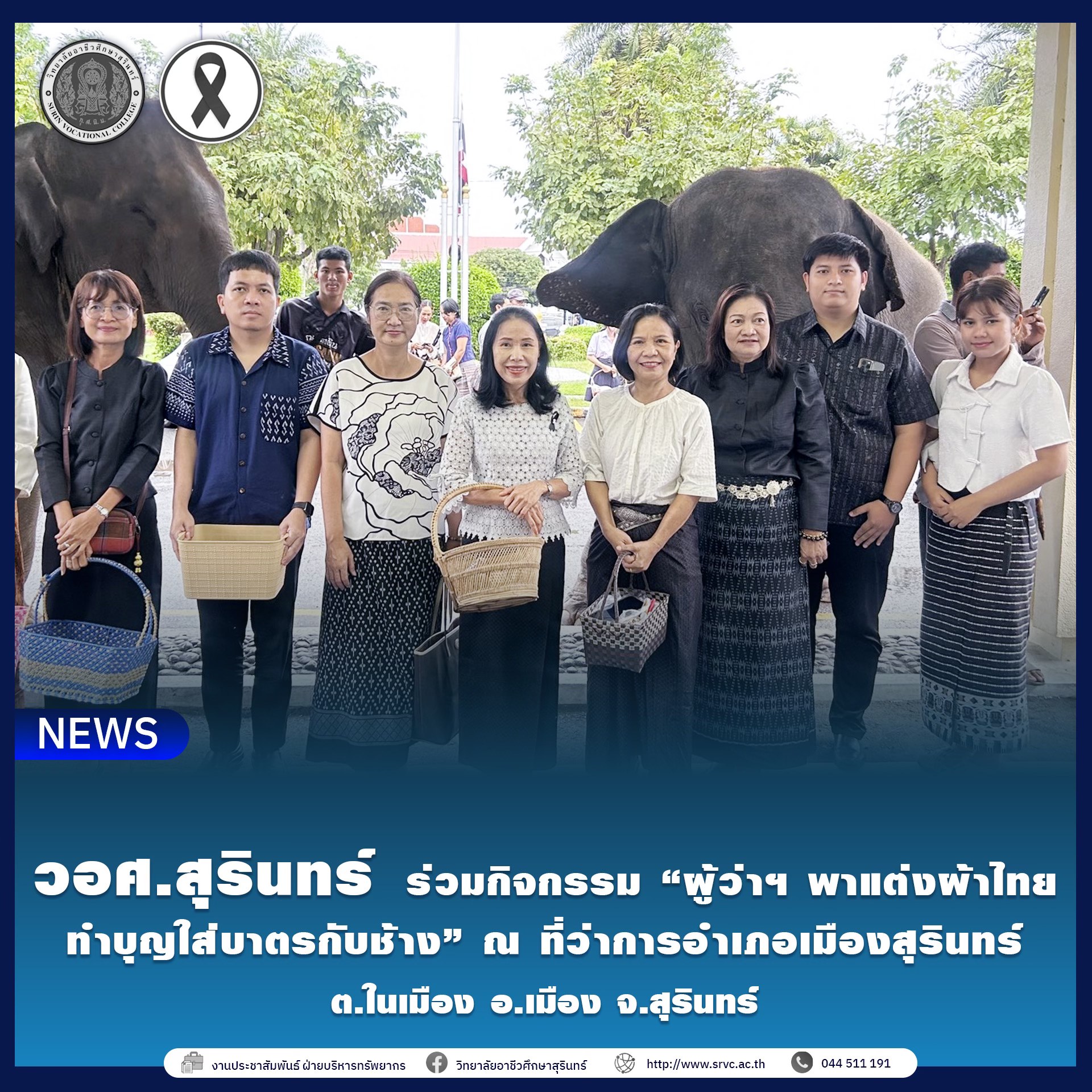 วอศ. สุรินทร์ ร่วมกิจกรรม "ผู้ว่าฯ พาแต่งผ้าไทย ทำทบุญใส่บาตรกับช้าง" ณ ที่ว่าการอำเภอเมืองสุรินทร์