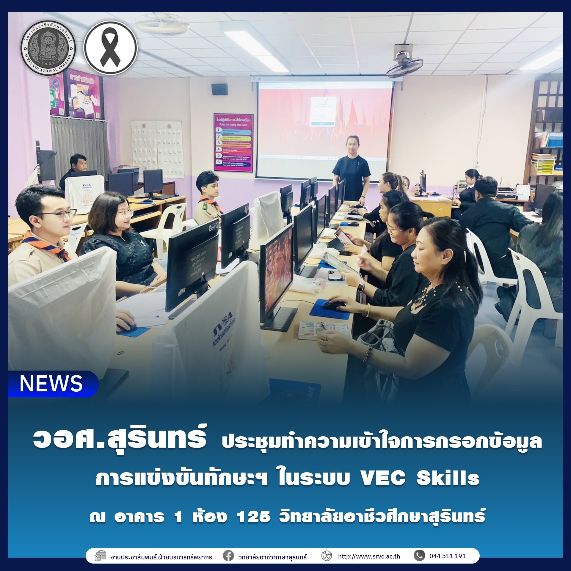 วอศ. สุรินทร์ ประชุมทำความเข้าใจการกรอกข้อมูล การแข่งขันทักษะฯ ในระบบ VEC Skills ณ อาคาร 1 ห้อง 125 วิทยาลัยอาชีวศึกษาสุรินทร์