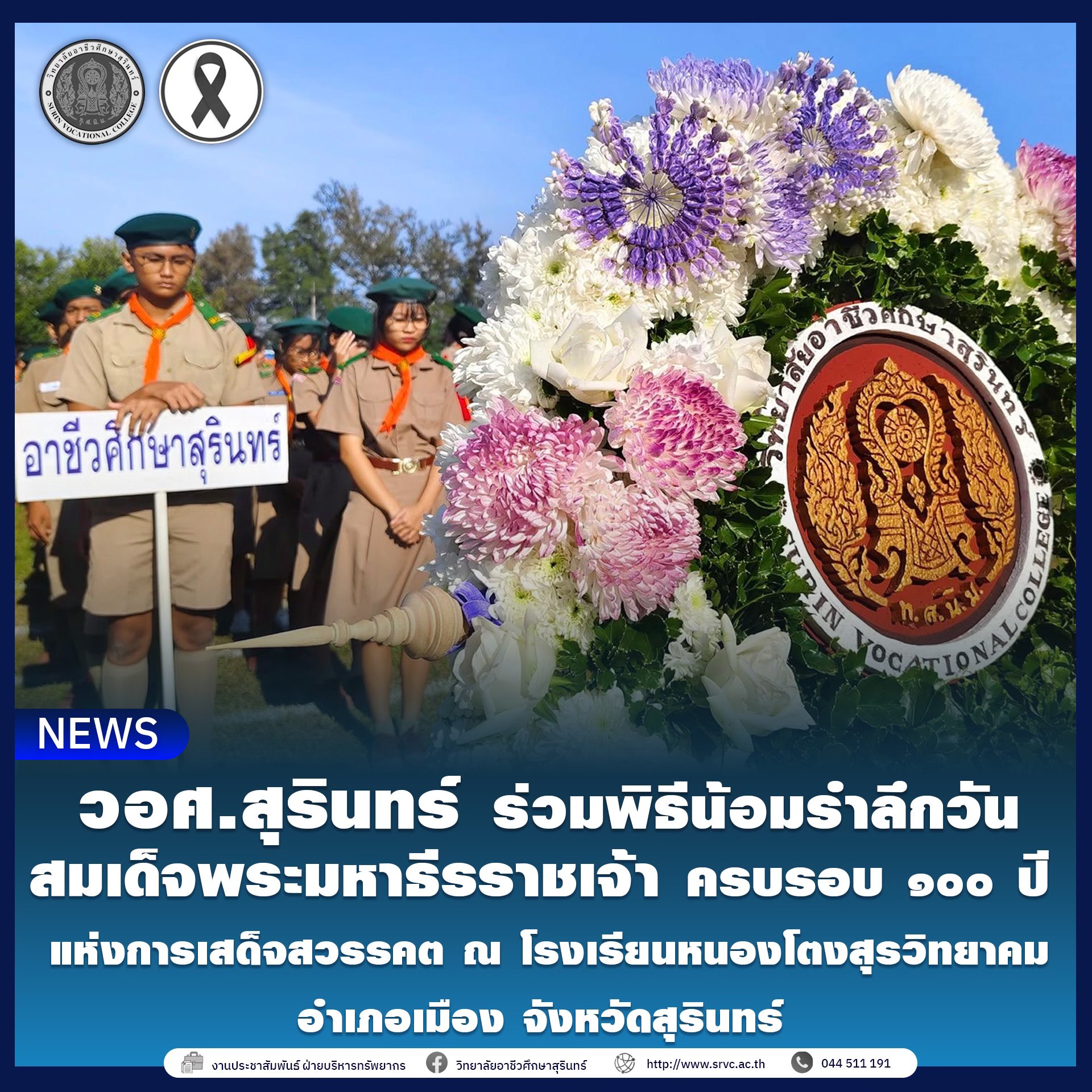 วอศ. สุรินทร์ ร่วมพิธีน้อมรำลึกวันสมเด็จพระมหาธีรราชเจ้า ครบรอบ 100 ปี แห่งการเสด็จสวรรคต ณ โรงเรียนหนองโตง (สุรวิทยาคม)