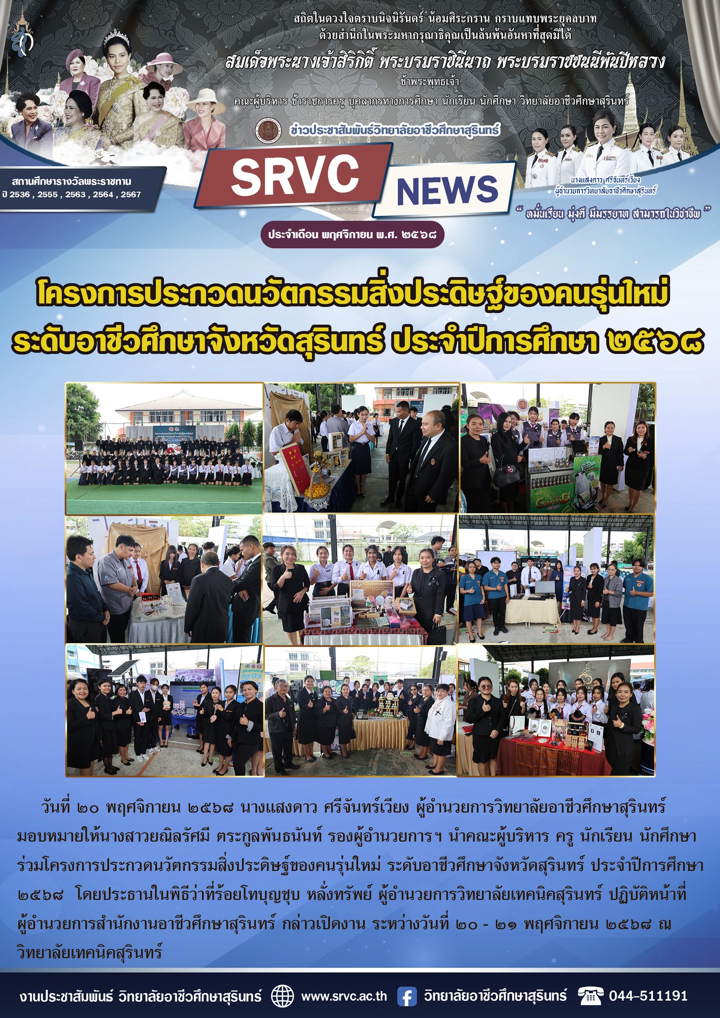 โครงการประกวดนวัตกรรมสิ่งประดิษฐ์ของคนรุ่นใหม่ ระดับอาชีวศึกษาจังหวัดสุรินทร์ ประจำปีการศึกษา 2568