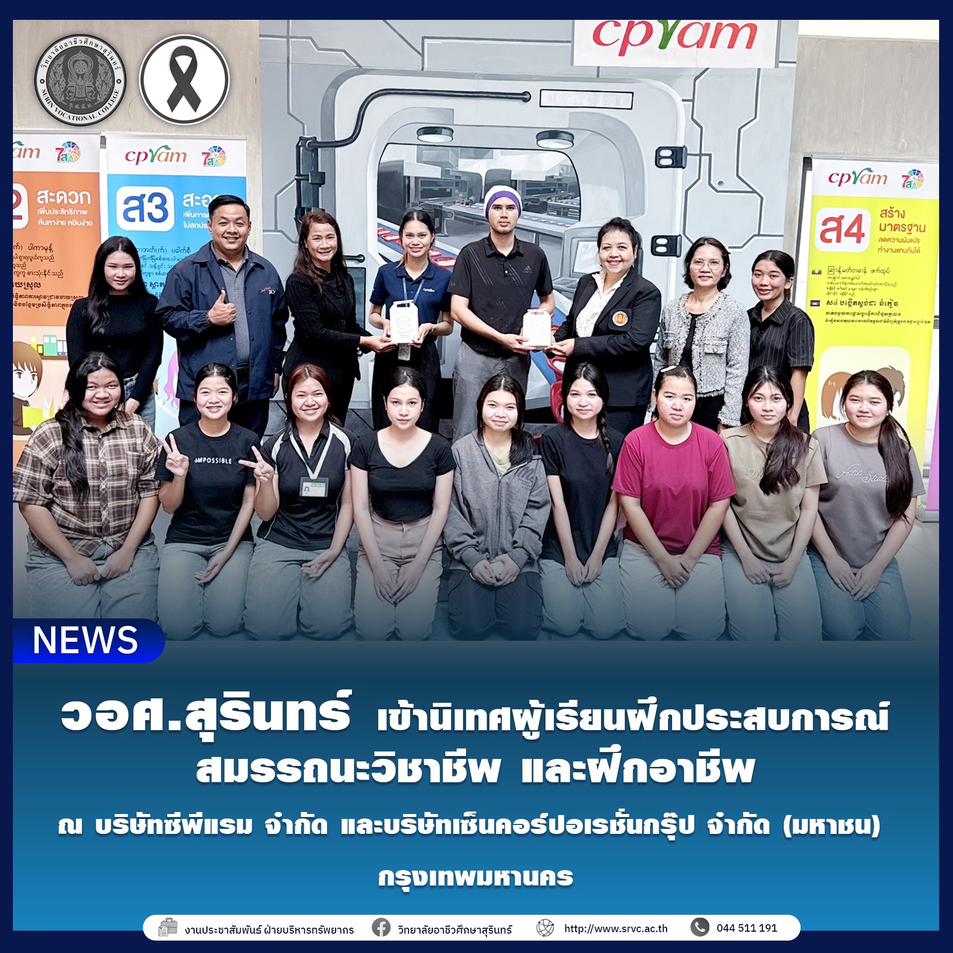 วอศ. สุรินทร์ เข้านิเทศผู้เรียนฝึกประสบการณ์สมรรถนะวิชาชีพ และฝึกอาชีพ ณ บริษัทซีพีแรม จำกัด และบริษัทเซ็นคอร์ปอเรชั่นกรุ๊ป จำกัด (มหาชน)