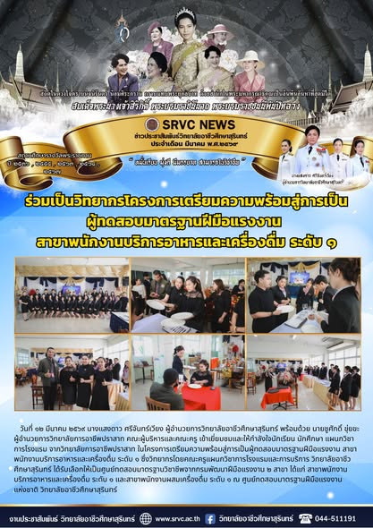 ร่วมเป็นวิทยากรโครงการเตรียมความพร้อมสู่การเป็นผู้ทดสอบมาตรฐานฝีมือแรงงาน สาขาพนักงานบริการอาหารและเครื่องดื่ม ระดับ 1